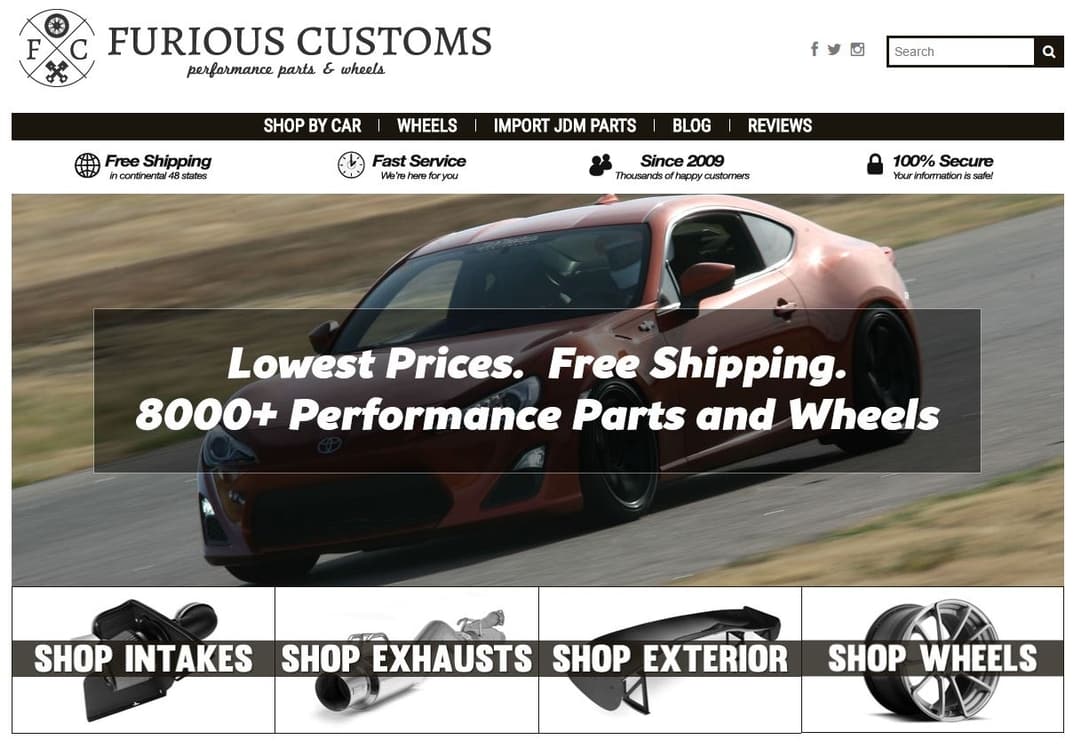 FuriousCustoms.com started in 2009, originally under the name Guerilla Racing, by a car enthusiast with huge ambition. Despite having no start up capital or business connections, Furious Customs has since grown into a leader of today's aftermarket automotive industry.Fast & Easy CommunicationFree Car ConsultationReal Car EnthusiastsSecure and Safe StoreDirect Relations with Manufacturers and DistributorsEasy ReturnsProven Track RecordFree Shipping (to 48 Continental States)*International Shipping QuotesFed up with poor customer service, product selection, and lack of information? Our site changes all of that.Whether you are looking to get a simple air intake or a full out time attack machine, we can help with your project. We aim to be the leader in online retailing for this market through:Superior customer serviceClear and correct product informationPersonal Experience with productsLowest PricesLoyalty RewardsCommitment to enthusiast communities