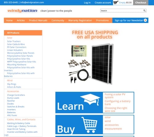 Welcome to WindyNation.com! WindyNation manufactures components for small wind & solar generators, with an emphasis on the growing community of do-it-yourselfers (DIYers) interested in doing more than just learning--but also doing! Our products are all designed with the sole intention of making high-quality and low-cost alternative home power solutions available around the world.